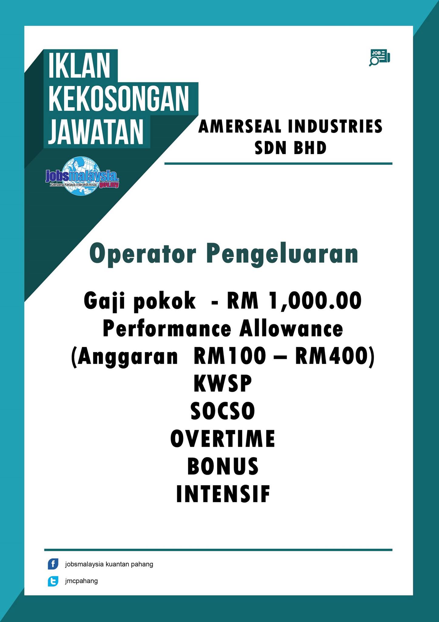 Jobsmalaysiapahang Twitterissa Jawatan Kosong Sebagai Operator Pengeluaran Di Amerseal Industrial Sdn Bhd Hp 013 9358315 09 5721060 Https T Co Ur8jtkqwop Twitter